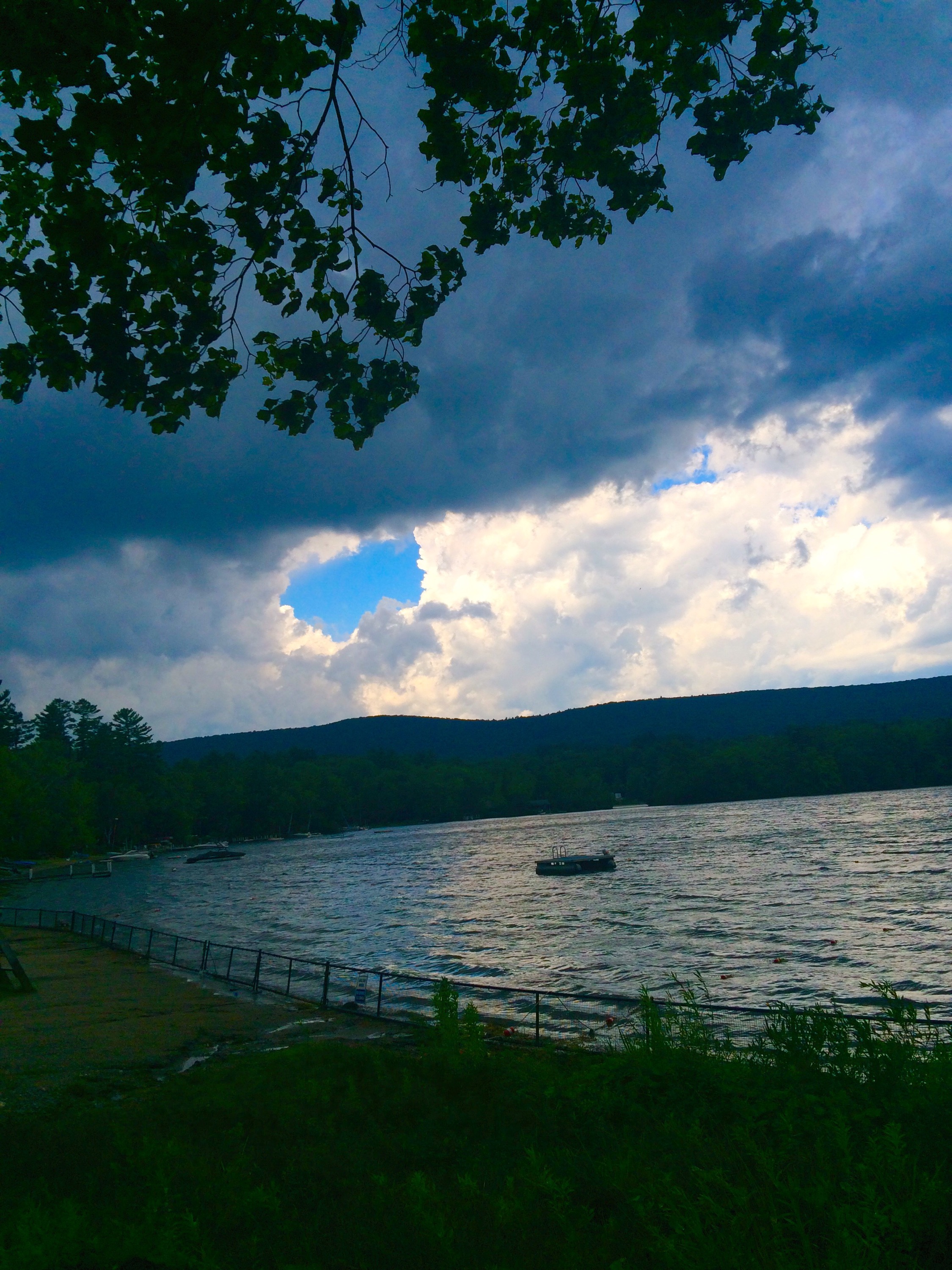 The plan was to swim across the lake once I got here, but lightning and rain rolled over the mountains, so now I’m huddled under a tree, waiting for SA to come get me in the car.
